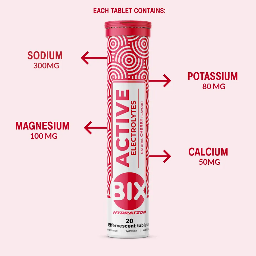 BIX ACTIVE contains the 4 main electrolytes Sodium, Magnesium, Potassium, Calcium and is formulated to improve your Physical Performance and General Wellbeing by keeping you hydrated during physical activity and during the day. BIX ACTIVE contains high quality ingredients and has a clean, natural taste.